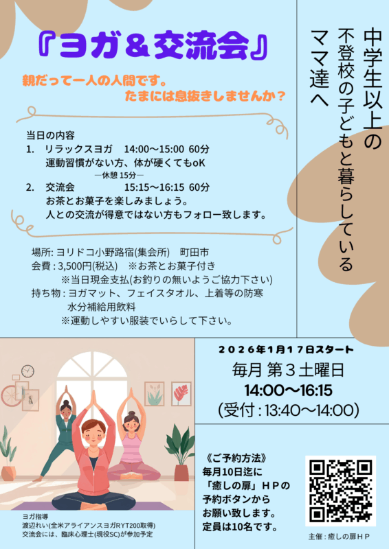 不登校児のママ達の居場所を提供し交流する「ヨガ交流会」始動!