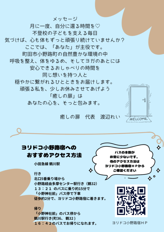 「ヨリドコ小野路宿」では毎月、様々なイベントを行っています。以下のスケジュール表から各イベントをクリックして詳細を確認してください。